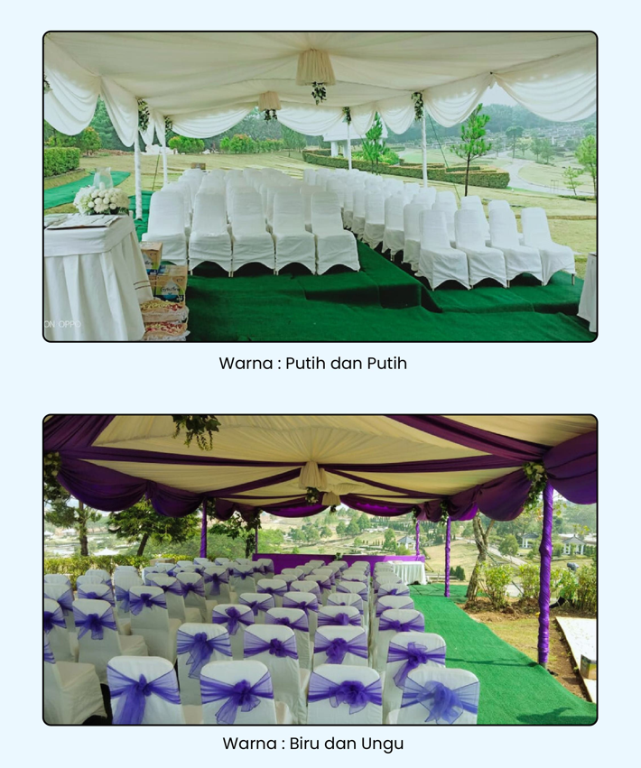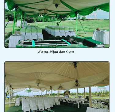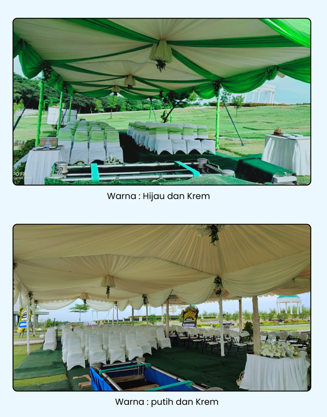 Tenda dekor ukuran luas 108 m2 (1 unit ukuran 6 m x 6 m ).