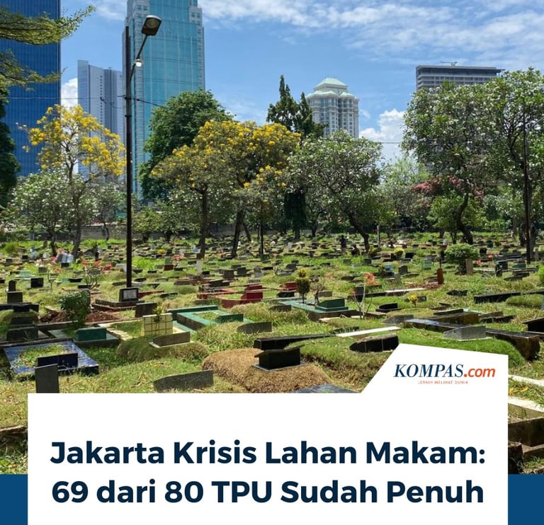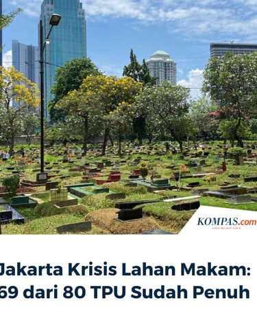 Suasana salah satu TPU di Jakarta yang kini sudah padat. Baris demi baris makam berdiri rapat, hampir tanpa ruang kosong di antara pepohonan kota yang menjulang. Inilah potret nyata Jakarta hari ini kota besar dengan lahan pemakaman yang semakin terbatas. Menurut data resmi, 69 dari 80 TPU di Jakarta telah penuh.