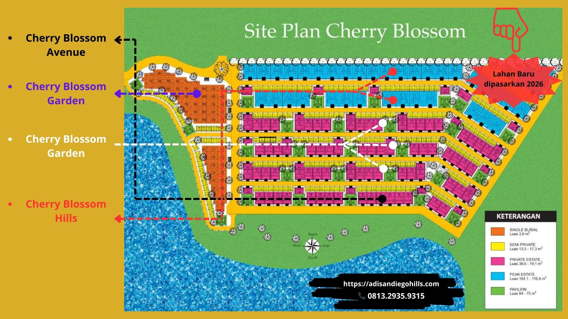 Di antara hamparan hijau San Diego Hills, Cherry Blossom menjadi salah satu area yang paling dicari—tempat peristirahatan yang memadukan keindahan alam, ketenangan spiritual, dan desain lanskap bertaraf internasional.