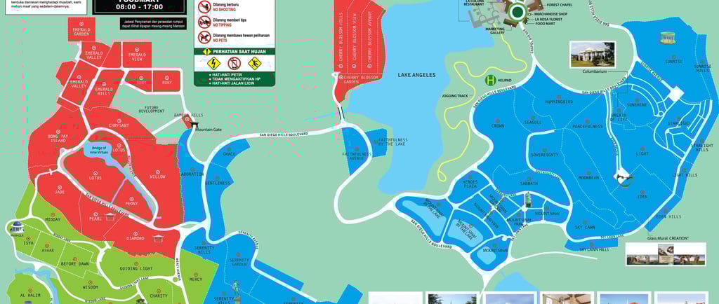 San Diego Hills yang menawarkan perpaduan unik antara sentuhan nuansa chinese dan keindahan alam. Cluster pemakaman ini sangat istimewa karena terletak di depan danau yang luas, kurang lebih sekitar 8 hektar. Sungguh luar biasa bagus!
